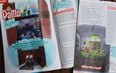Pátý příběh komiksu Morčata v akci vychází v dubnovém časopisu Tečka. Nazvala jsem ho Džungle na půdě. Kresby se ujala Ester Kuchynková. Foceno na zahradě s naším hadem Vincentem.