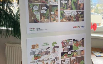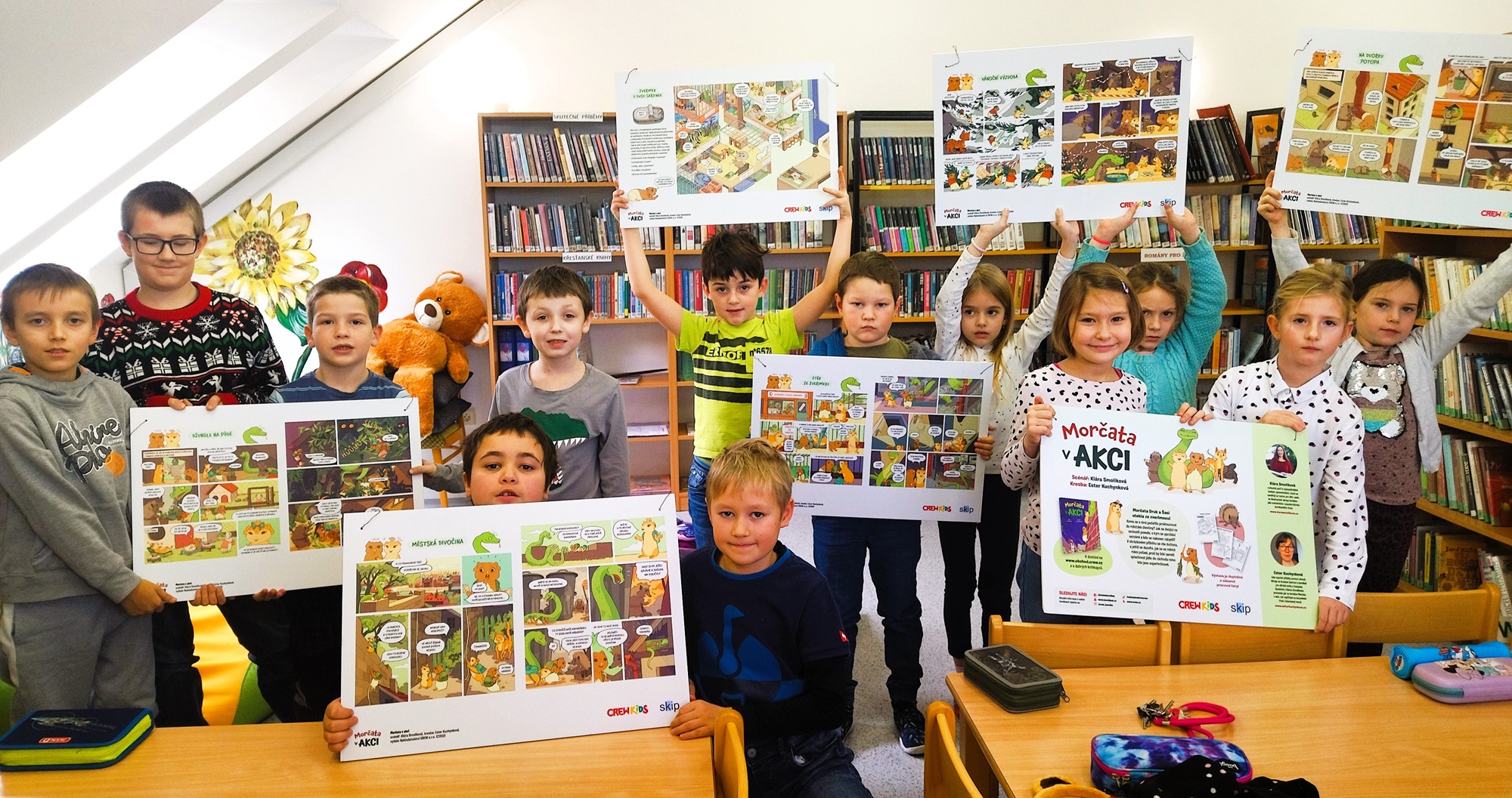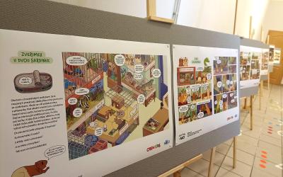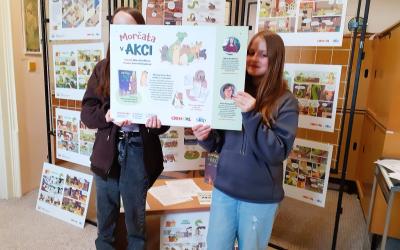 Výstava vznikla na motivy komiksu Morčata v akci. Aby návštěvníci rozuměli ukázkám a naplno si užili příběh, doporučuji mít knihu přímo u výstavy – ideálně ve fondu knihovny, školní či třídní knihovničce nebo k zapůjčení poblíž panelů.