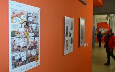 Celý měsíc je v knihovně ke zhlédnutí výstava ke stejnojmenné knize Spolkla mne knihovna, která pojednává o historii knih a knihoven a kterou skvělými ilustracemi a komiksy opatřil Vojtěch Šeda.