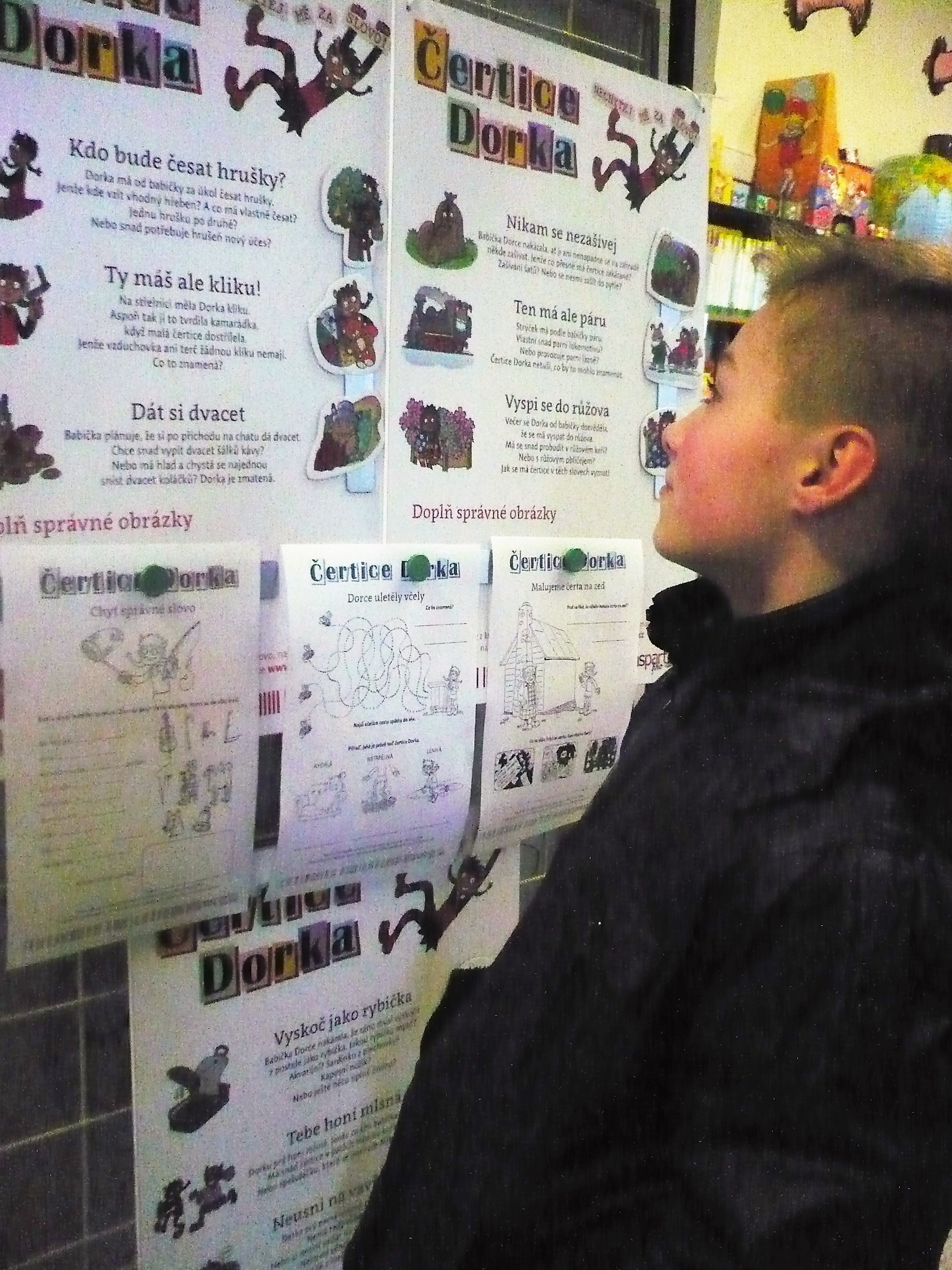 Městská knihovna Konice v únoru nachystala pro malé čtenáře hravé tabule s čerticí Dorkou, na kterých si holčičky a kluci mohou vyzkoušet, co znamenají různá ustálená slovní spojení. Výstava Čertice Dorka