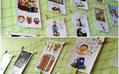 Z kosmonoské knihovny přišly milé ohlasy na knihožroutskou výstavu. Prý měly obrázky i knížka u dětí úspěch a paní knihovnice byla také nadšená! Já ale myslím, že právě paní knihovnice měla na tom úspěchu velký podíl. Děti totiž ponoukla, aby pátraly po paní učitelce Snížkové z knížky a nakreslily její portrét. Povídali si i o Knihožroutech v domácích knihovničkách a domluvili se, že jim dají do knížky vzkaz, jako to dělala Zorka s Alešem. Někdo jim prý chtěl dát ke knihovně i postýlku pro panenku nebo sušenku na talířku.