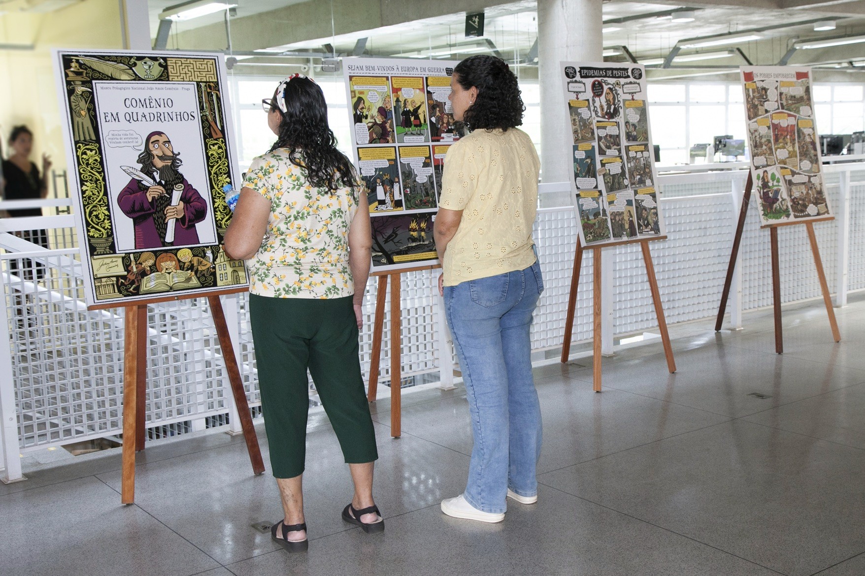 Výstava Komenský v komiksu, kterou jsem připravila pro Národní pedagogické muzeum, putuje po světě. Aktuálně je k vidění v saopaulské knihovně Biblioteca Parque Villa-Lobos, kde díky překladu do portugalštiny od začátku oslovuje i místní publikum. Součástí instalace jsou doprovodné programy pro děti i odborné přednášky. Velké díky patří Věře Matysíkové, která panely s nadšením přeložila a celý projekt v Brazílii zorganizovala, a také Lukášovi Fibrichovi, který komiksy překladu přizpůsobil.
