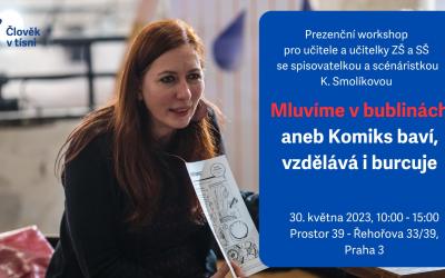 Po roce opět živý seminář o komiksu pro organizaci Člověk v tísni a to v úterý 30. 5. 2023 v Prostor 39 (Řehořova 33/39, Praha 3) od 10:00 do 15:00. Připravila jsem nové pracovní listy, které nakreslil Martin Hanschild a s jejichž pomocí se více zaměřím na propojení komiksu a globálního rozvojového vzdělávání. Akce je určená pro ty, kteří se chtějí v práci s komiksem ve škole, knihovně, skautu nebo třeba muzeu posouvat dál. Díky organizátorovi je zdarma, takže se hodí i pro rodiče domškoláků a ostatní průvodce a edukátory, kteří si své další vzdělávání financují z vlastní kapsy. Přihlásit se můžete zde.