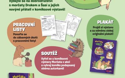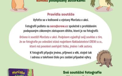 Komiksové nakladatelství CREW připravilo na březen k mé knize Morčata v akci krásnou výstavu se spoustou doprovodných materiálů – soutěží, plakáty i pracovními listy s metodikou, které získáte pod tímto odkazem. Soutěž je určena pro děti a měla by obohatit pestrou nabídku akce Březen – měsíc čtenářů, proto neváhejte, soubory si stahujte a z vytištěných materiálů uspořádejte výstavu!