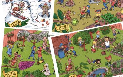 Připravujeme nový výstavní soubor tvořený 14 závěsnými deskami formátu A2 zachycujícími proměny školní zahrady měsíc po měsíci. Autorem velkoformátových veselých ilustrací je Vojtěch Šeda a pocházejí z mé knihy Devět malých zahradníků, která vychází ve druhé polovině května v nakladatelství Mladá fronta. Výstava je k dispozici od června 2021! Stačí mi napsat na klara.smolikova@tiscali.cz a zarezervovat si termín podle tabulky, která je k nahlédnutí zde. Zápůjčka je zdarma. Pouze prosím o zaslání poštou na další místo a pár fotografií z instalace. K výstavě ráda zašlu doprovodné pracovní listy.