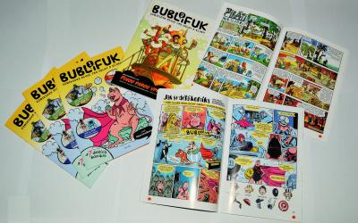 Právě vyšla historicky druhá komiksová revue Bublifuk! Nazvala jsem ji Plnou parou vpřed! a na obálce najdou malí čtenáři skvělou ilustraci Tomáše Kučerovského. Uvnitř na ně čeká opět deset komiksů - od jednostránkových po šestistránkové.