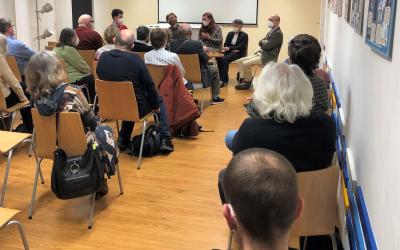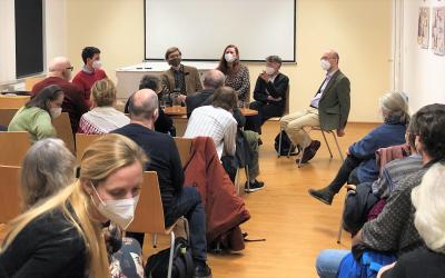 Na půdě Židovského muzea v Praze jsme ve středu 15. prosince odpovídali na otázky, jak se rodila kniha Cha cha chá, zasmál se Mordechaj i doprovodná výstava, která seznamuje malé i velké čtenáře s dějinami Židů na našem území formou dobrodružného příběhu. Pozvání přijali i odborní garanti publikace doc. Pavel Sládek a doc. Jiřina Šedinová.