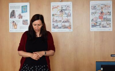 Moc pěkná instalace panelů z knihy Spolkla mě knihovna čeká čtenáře v galerijním domečku knihovny Lipníku nad Bečvou. Kvůli besedě se sice musely vitríny rozstrkat ke stěnám, ale nápadité dekorace z knih vytvořené paní knihovnicí Simonou Ryšavou nepřehlédnete.