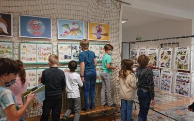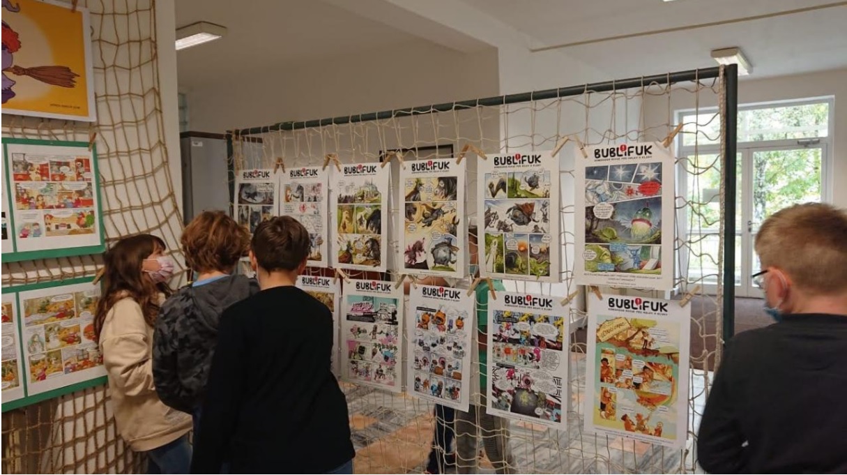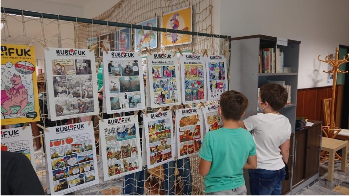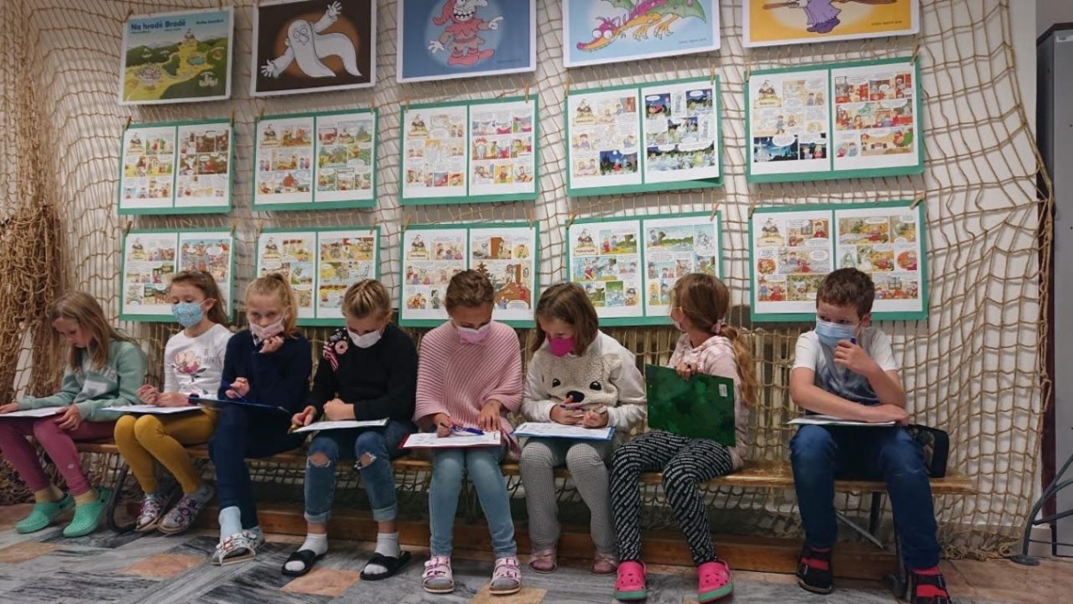 Ze štramberské knihovny přišla milá zpráva i s báječnými fotkami: "Děti ze ZŠ Štramberk navštívily putovní výstavu komiksového příběhu Na hradě Bradě autorky Kláry Smolíkové a Honzy Smolíka. Nejprve si prohlédly výstavu, poté musely přečíst všechny komiksy, aby dokázaly vyřešit všechny úkoly z pracovních listů."