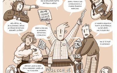 V lednu bruntálská knihovna vystavovala komiksové panely Kačky Illnerové z knihy Nečtu! Poslouchám.
