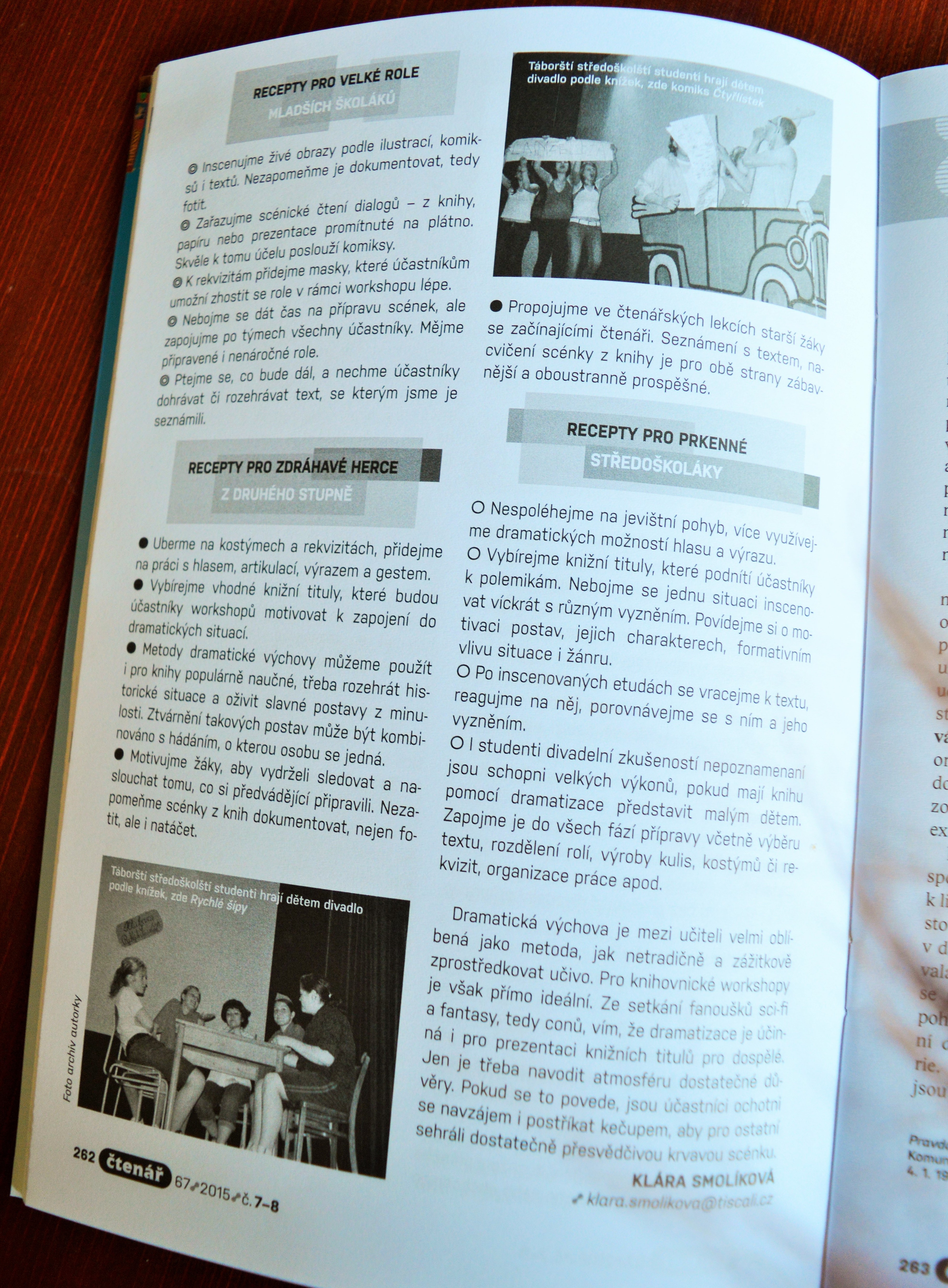 Motivujme žáky, aby vydrželi sledovat a naslouchat tomu, co si předvádějící připravili. Nezapomeňme scénky z knih dokumentovat, nejen fotit, ale i natáčet.