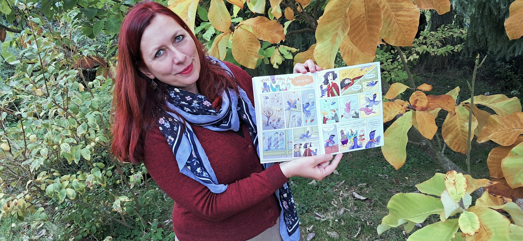 Ke spolupráci jsem přizvala výtvarnici Ilonu Komárkovou a z výsledných příběhů mám opravdu radost. Čtyři městští holubi v nich řeší problémy ne nepodobné těm, které trápí děti. Tentokrát se do popředí dostala akční Agáta, která si obvykle na módu moc nepotrpí, ale ztracený šátek v ní probudil touhu získat nový zkratkou.