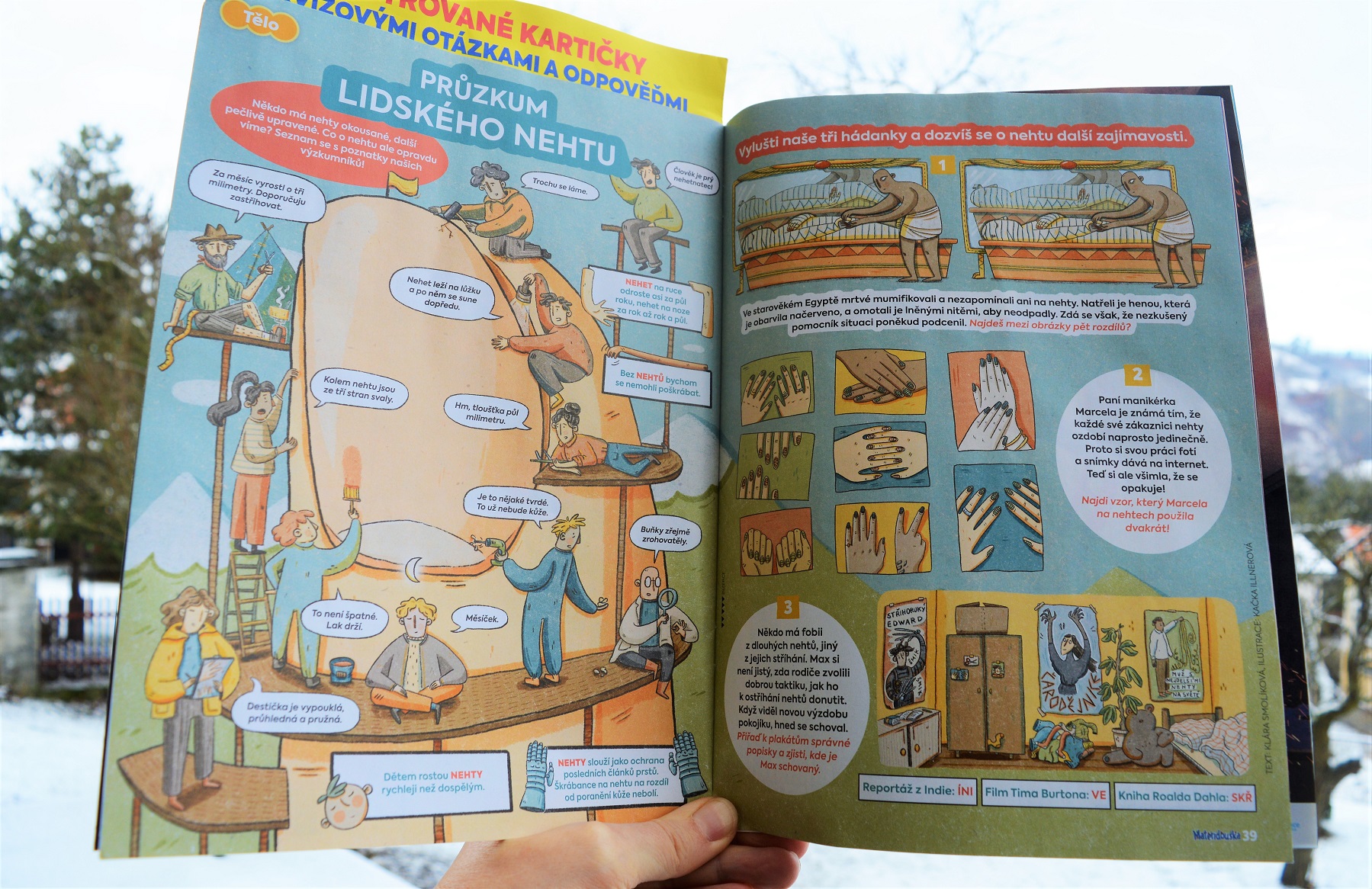 Okusujete si nehty? Lámou se vám? Nebo jen o nehtech nevíte víc, než co by se za nehet vešlo? S ilustrátorkou Kačkou Illnerovou jsme zaznamenaly, co průzkumníci lidského těla o nehtech zjistili. Najdete v prosincové Mateřídoušce, kde se na čtenáře těší i další komiksová epizoda Cukříka Cypriána. Dvojjazyčný komiks kreslí Marcel Dokoupil a tentokrát se cukr se solničkou přou, zda je venku pocukrováno, nebo posoleno.