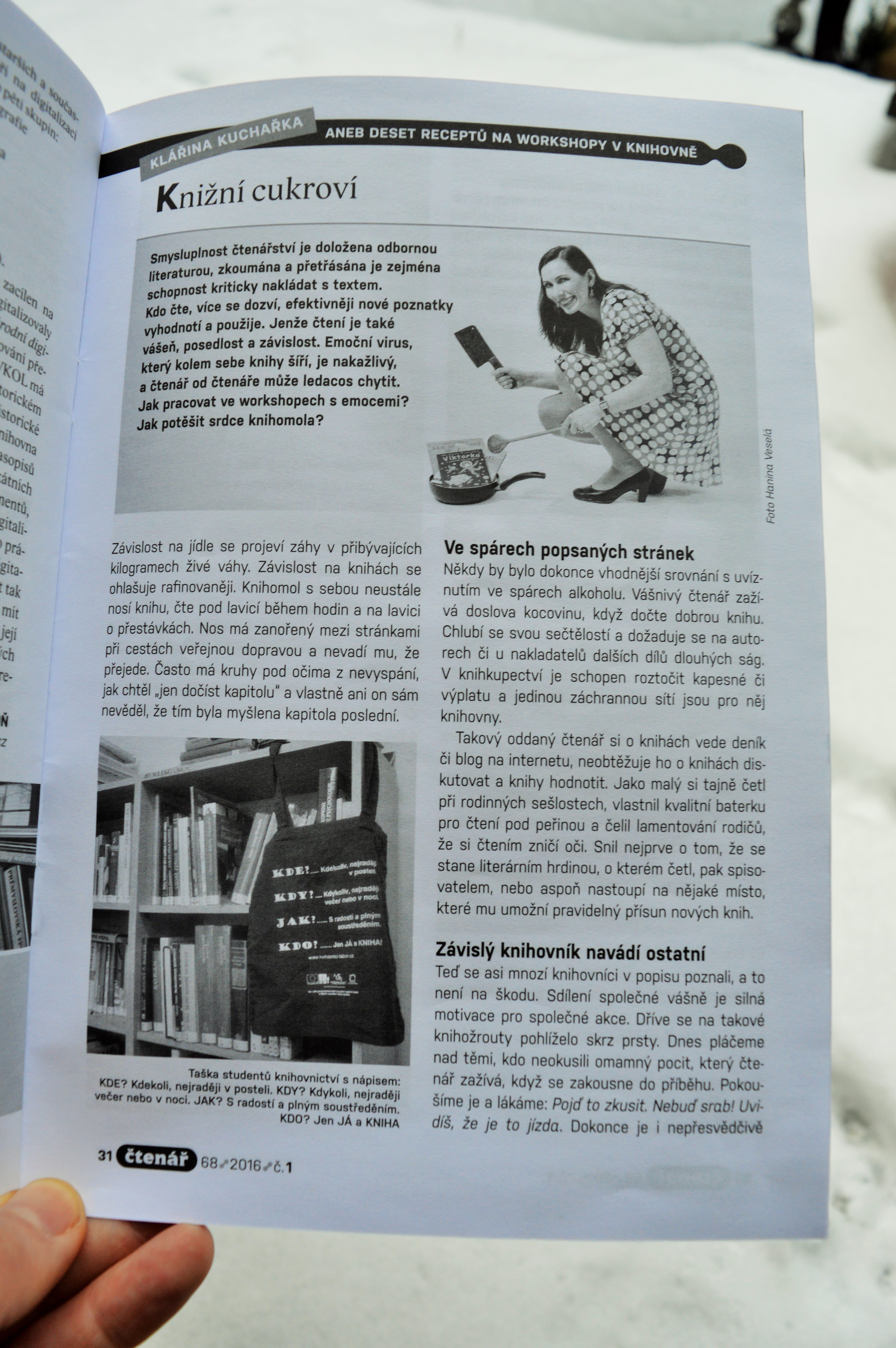 V lednovém Čtenáři, měsíčníku pro knihovny, otiskli poslední díl mého seriálu námětů na knihovnické workshopy. Dojídáme v něm vánoční cukroví, tedy nápady, které se nevešly. Proto v článku najdete třeba tipy na propagační předměty a akce či ohlédnutí za soutěží "Jak vypadá knihožrout?" Ne náhodou se k ní vracím ve zpracování letošní knížky pro prvňáčka, kterou jsem nazvala Knihožrouti.