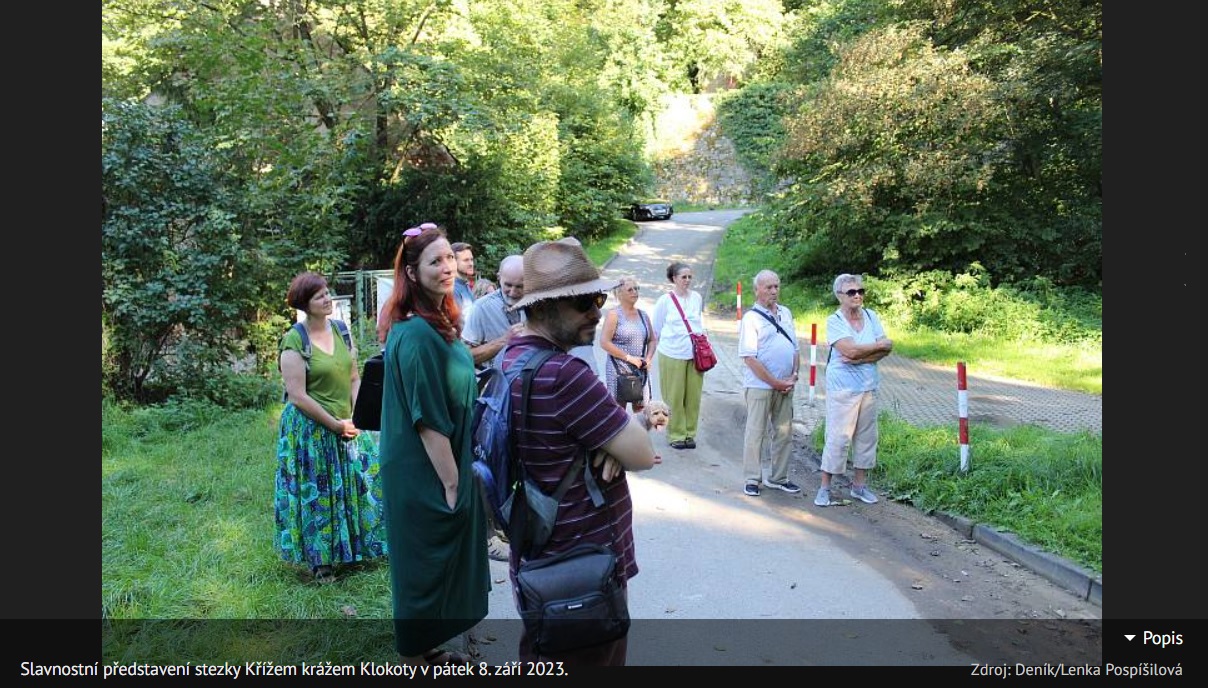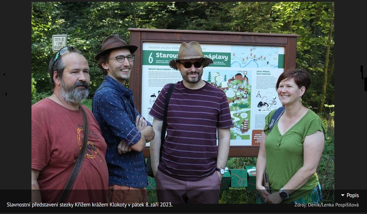 Na cestě Tismenickým údolím od historického mostku mohli lidé v pátek 8. září potkat partu nadšenců. Ti vyrazili na slavnostní otevření stezky Křížem krážem Klokoty se samotnými autory. „Je to moc hezké, generově vyvážené, hravé, vtipné a zábavné. Nechybí historická fakta a regionální zajímavosti. Jen spisovatel Hašek není Josef, ale Jaroslav,“ odhalil chybičku v textu jeden z účastníků výpravy.