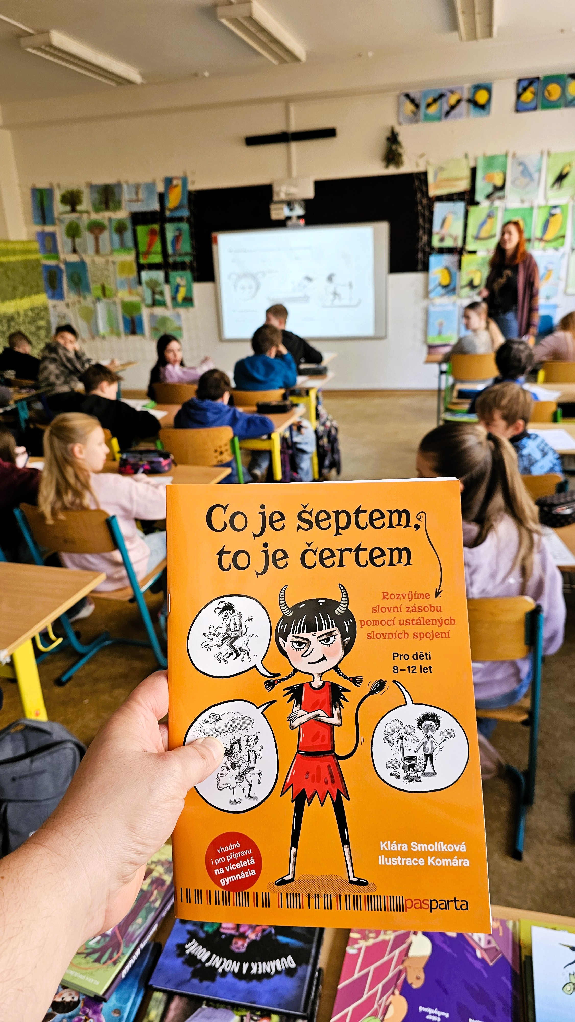 Na titulní straně je sice uvedeno, že Co je šeptem, to je čertem míří na děti od 8 do 12 let, ale troufám si napsat, že šikovný pedagog či rodič použije spoustu námětů u dětí mladších i starších. Ustálená slovní spojení se vyskytují i v přijímacích testech na střední školy, u nás doma se tedy bude trénovat.