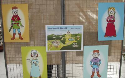 20 komiksů formátu A3 plus 6 velkých obrázků na šířku a 6 obrázků samostatně závěsných na výšku, obojí ve formátu A2 od Honzy Smolíka z knihy Na hradě Bradě