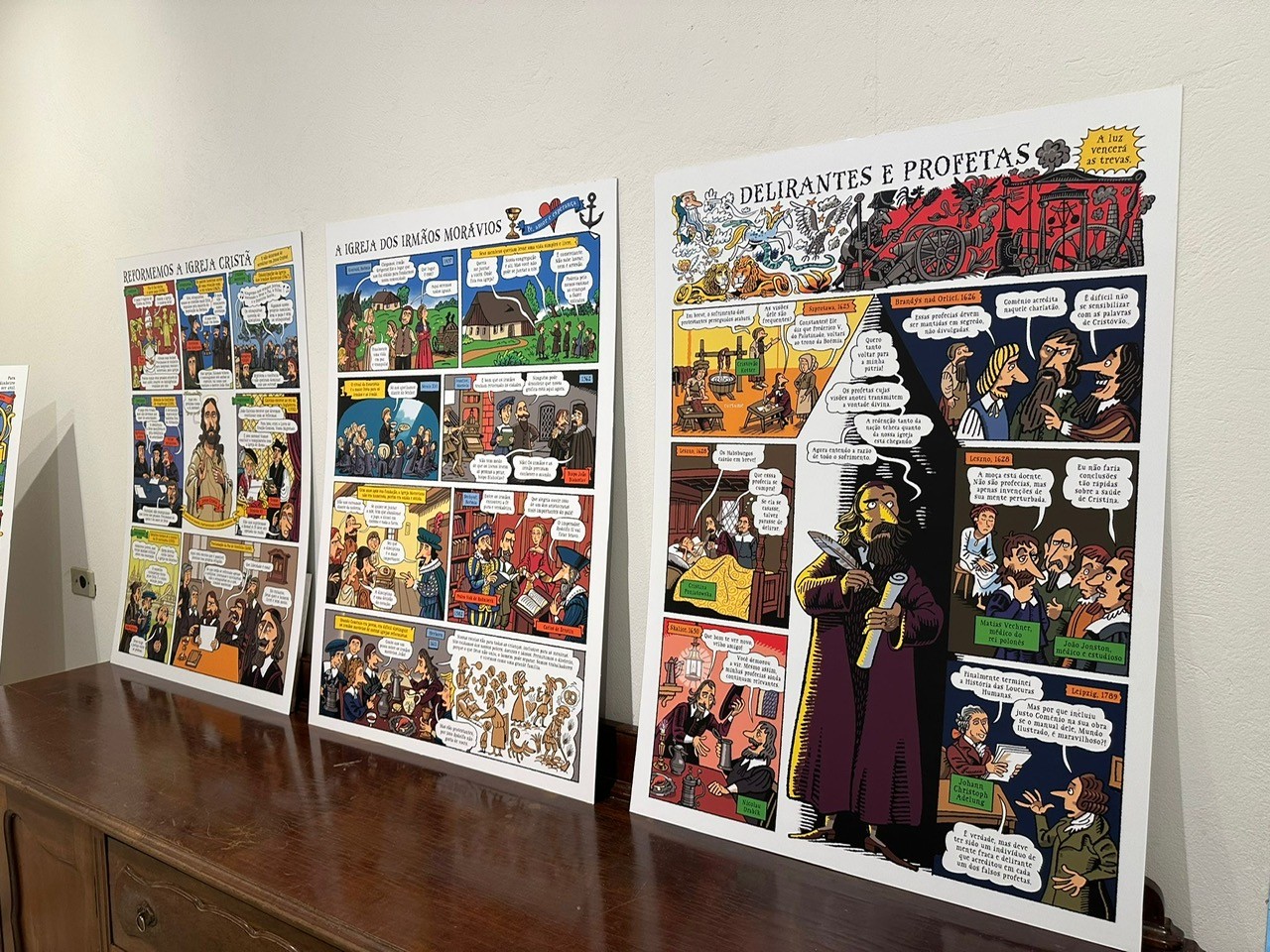 Výstavu Komenský v komiksu, kterou jsem připravila pro Národní pedagogické muzeum, ilustroval Lukáš Fibrich. Do Brazílie se dostala díky Věře Matysíkové, která panely přeložila do portugalštiny a pomohla výstavu představit místnímu publiku.
