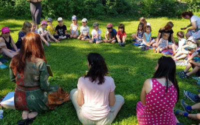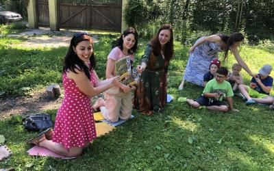 V pátek 18. června se slunce rozpálilo a město se stalo téměř neobyvatelným. Kdo mohl, utíkal do stínu parku, lesa či zahrady. My jsme se vypravili na palouk do Xaverovského háje, kde v hájence na palouku našla útočiště lesní škola a školka. S dětmi jsem se viděla už jednou, kdy jsem sem před víc než rokem zavítala s programem ke knize Začarovaný Hvozd. Teď jsme tu s malými čtenáři, ale také zahradníky přivítali novinkovou knihu Devět malých zahradníků: Rok ve školní zahradě. Kmotrou byla herečka a zahradnická víla Klára Issová.