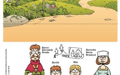 Za zrušená živá setkání s malými čtenáři a milovníky komiksů tu mám první Klářin miniworkshop! Vybrala jsem tři úkoly ke komiksové knize Na hradě Bradě. Čeká nás stříhání, vybarvování, a nakonec vlastní tvorba komiksu. Na hradě Bradě žije rodinka Bradových – baron Barnabáš Brada, baronka Berta Bradová a Bertík a Bibi.