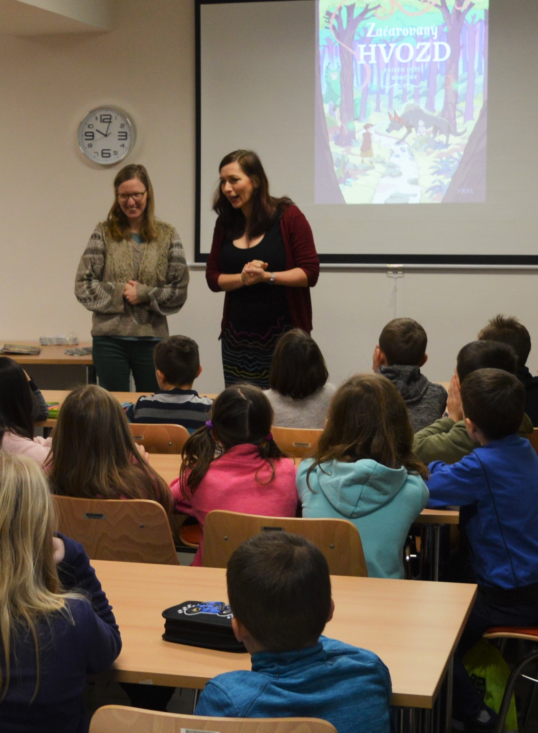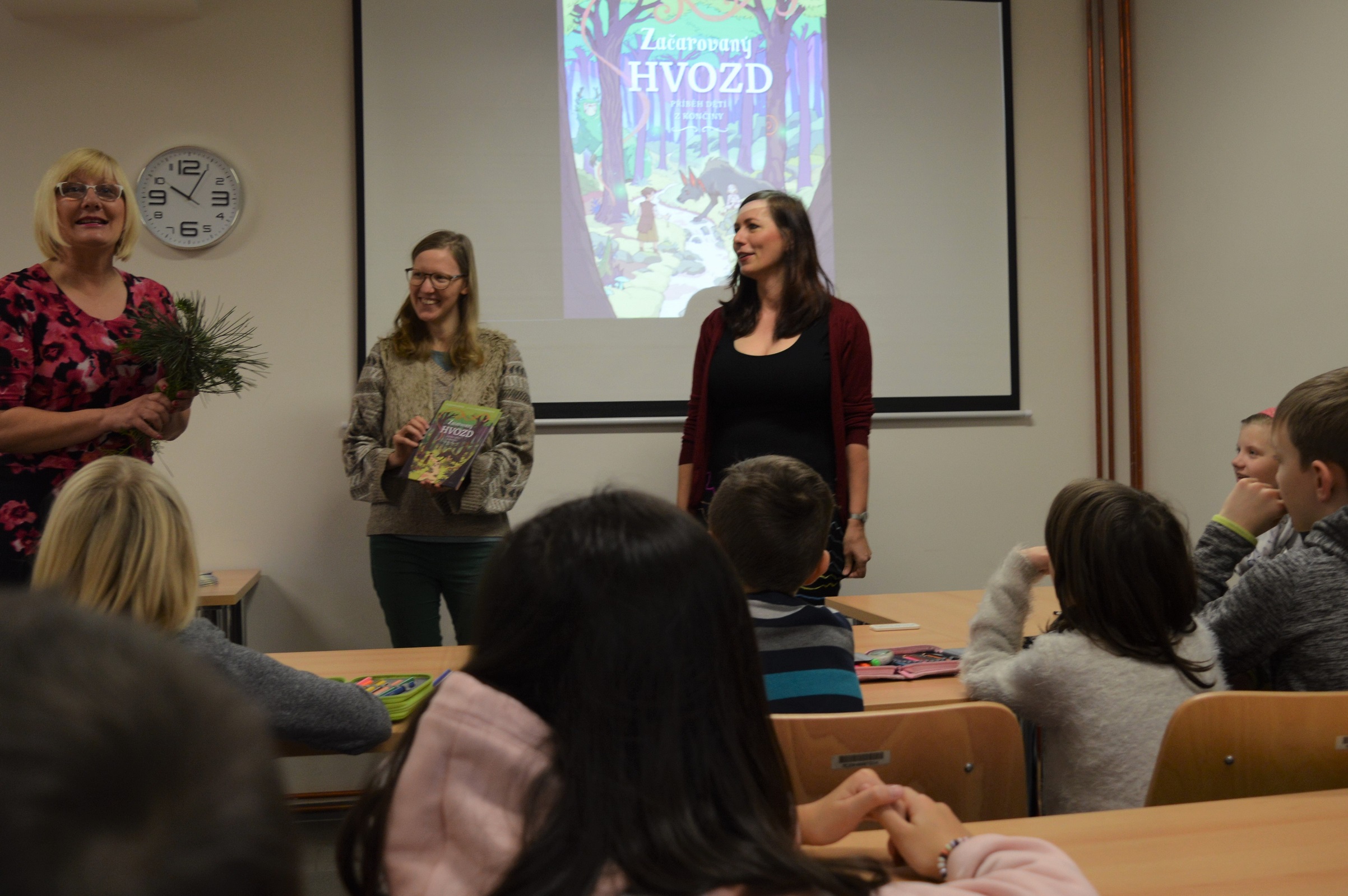 Chcete-li se s Bolechem a Lunou vydat do hlubin Hvozdu, kde přebývají lesní duchové, je pátek třináctého ideálním dnem. Proto jsme se 13. prosince sešli v knihovně Horních Počernic, abychom slavnostně uvítali knihu Začarovaný Hvozd: Příběh dětí s Končiny. Kmotra Alena Štrobová, starostka Horních Počernic, metličkou z větví jehličnanů knížku postrčila do světa mezi čtenáře. Spolu s ilustrátorkou Ester Kuchynkovou jsme dětem, které se křtu zúčastnily, představily nejen knížku, ale i naše další projekty. Potom se holčičky a kluci pustili do vytváření vlastní knížky. Program, který jsem nově zařadila do nabídky besed, je tedy úspěšně ozkoušený.