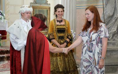V úterý 28. června 2022 se mi na hradě Valdštejn dostalo mimořádné pocty. Během pasování prvňáčků na čtenáře jsem byla i já vyzvána, abych poklekla před královnu a krále a poklepáním mečem po ramenou byla přijata do Řádu krásného slova. Odteď mi můžete říkat rytířko Kláro.