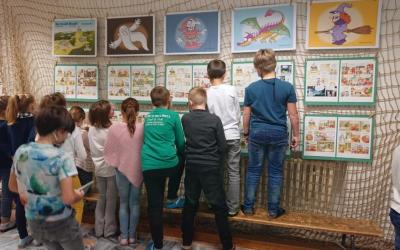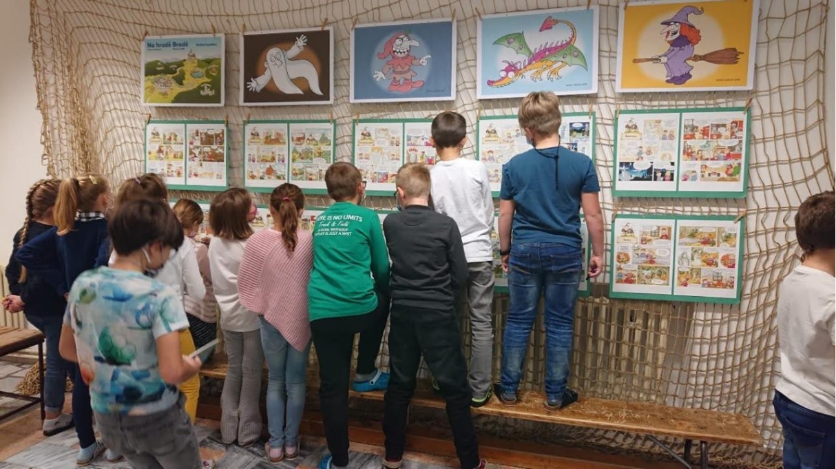 Ze štramberské knihovny přišla milá zpráva i s báječnými fotkami: "Děti ze ZŠ Štramberk navštívily putovní výstavu komiksového příběhu Na hradě Bradě autorky Kláry Smolíkové a Honzy Smolíka. Nejprve si prohlédly výstavu, poté musely přečíst všechny komiksy, aby dokázaly vyřešit všechny úkoly z pracovních listů."