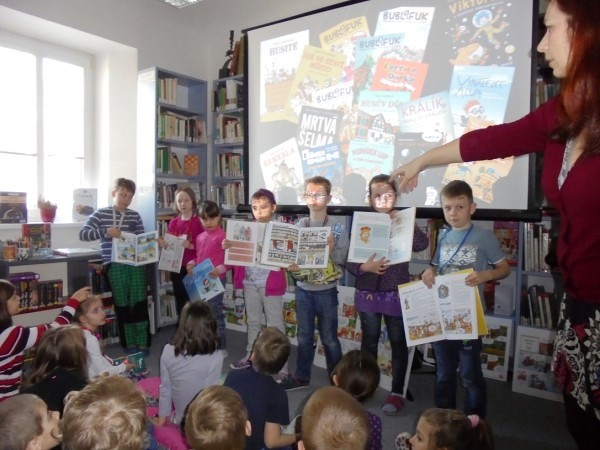 Dne 17. března vyrazily třídy 1.A a 1.B opět do knihovny. Tentokrát jsme se v prostorách knihovny Vrdy potkali s paní spisovatelkou Klárou Smolíkovou. Naši nejmenší školáci se dozvěděli, co je komiks, jak vzniká a dokonce si zkusili do několika bublinových okének svými slovy napsat komiksový minipříběh. Pak hledali mezi mnoha knihami a časopisy právě komiks. Paní Smolíková dětem představila své knížky, např. Králík málem králem, Na hradě Bradě, Vynálezce Alva nebo velmi úspěšný komiks Viktorka. Děti se během celého programu aktivně a s chutí zapojovaly, odpovídaly, kreslily do pracovních listů, četly komiksové bubliny a též se staly na chvíli herci. Velké poděkování patří paní knihovnici Kobelové za zprostředkování setkání a samozřejmě paní Smolíkové, která žáčkům přiblížila zábavnou a hravou formou svět komiksu. Mgr. Jana Pospíšilová, Mgr. Eva Pospíšilová |