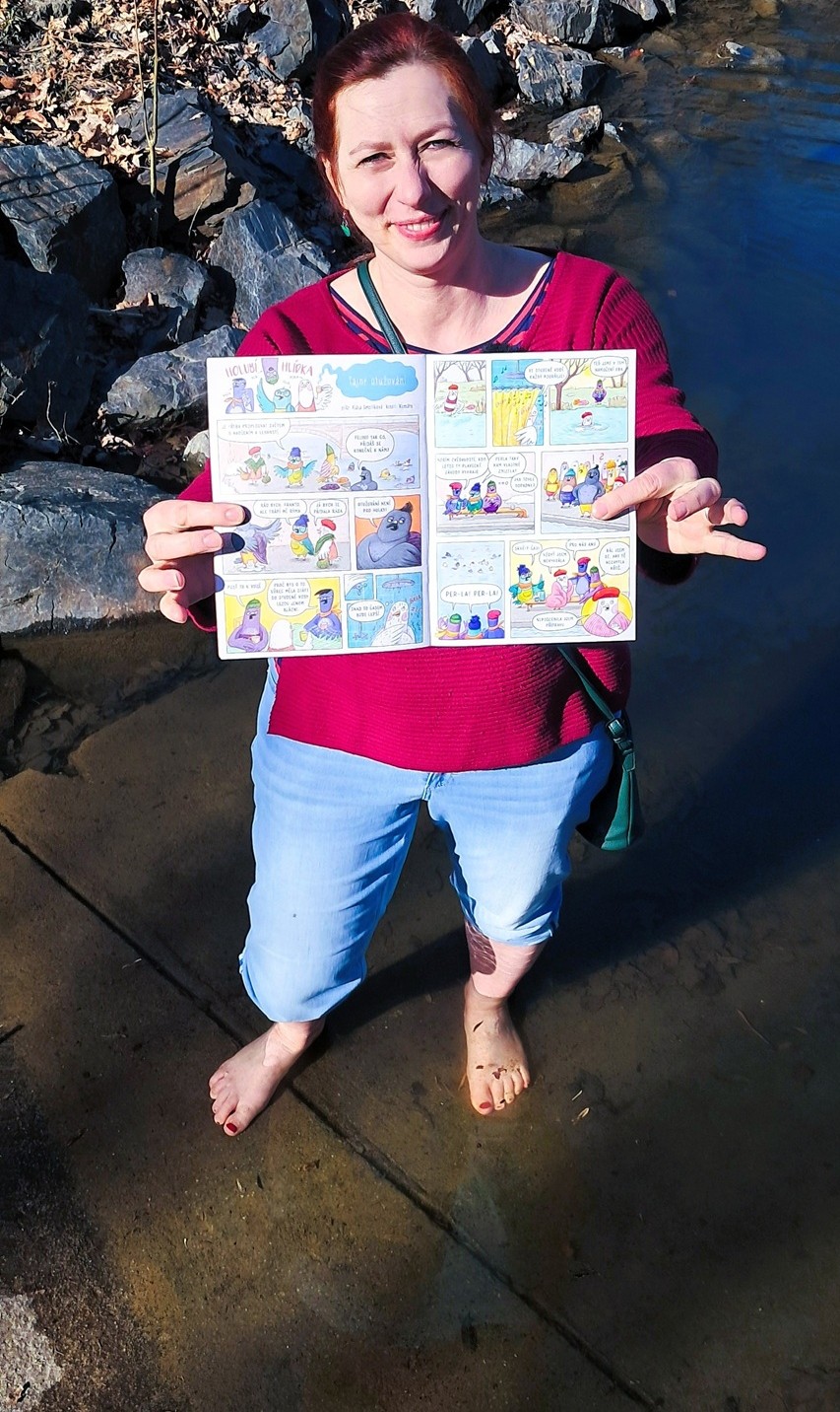 Práci na komiksu nebereme na lehkou váhu. Když Komára kreslila aktuální díl, ozvala se mi, že bude potřeba scénář trochu upravit. Sama se totiž otužování věnuje a dobře ví, že některá pravidla, třeba nepouštět se do ledové vody bez dozoru, jsou zásadní. A tak jsem příběh upravila.